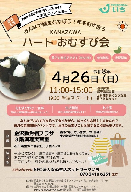 令和8年4月26日(日)、4月度ハートおむすび会を開催いたします。